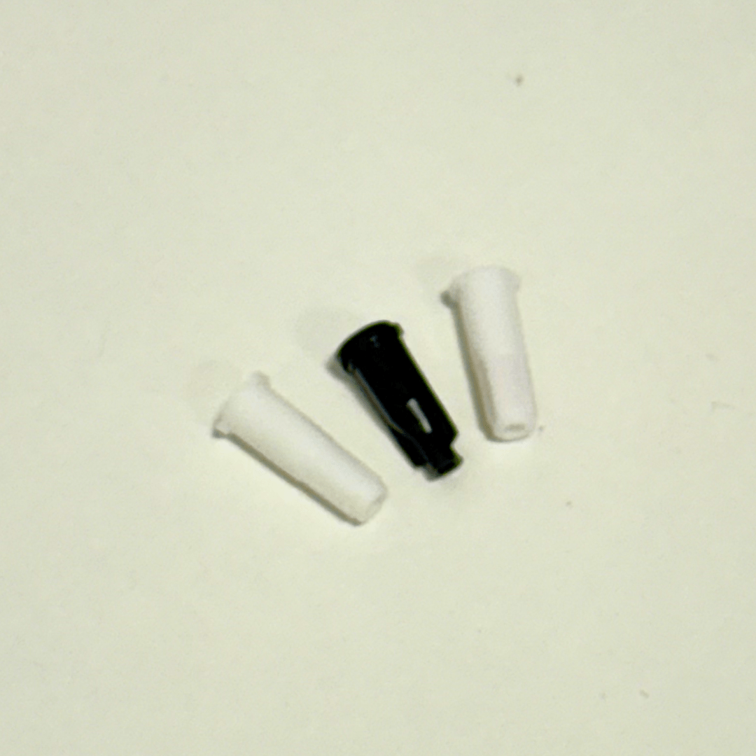 Conjunto de fechadores para seringas, garantindo vedação e segurança no armazenamento de insumos.