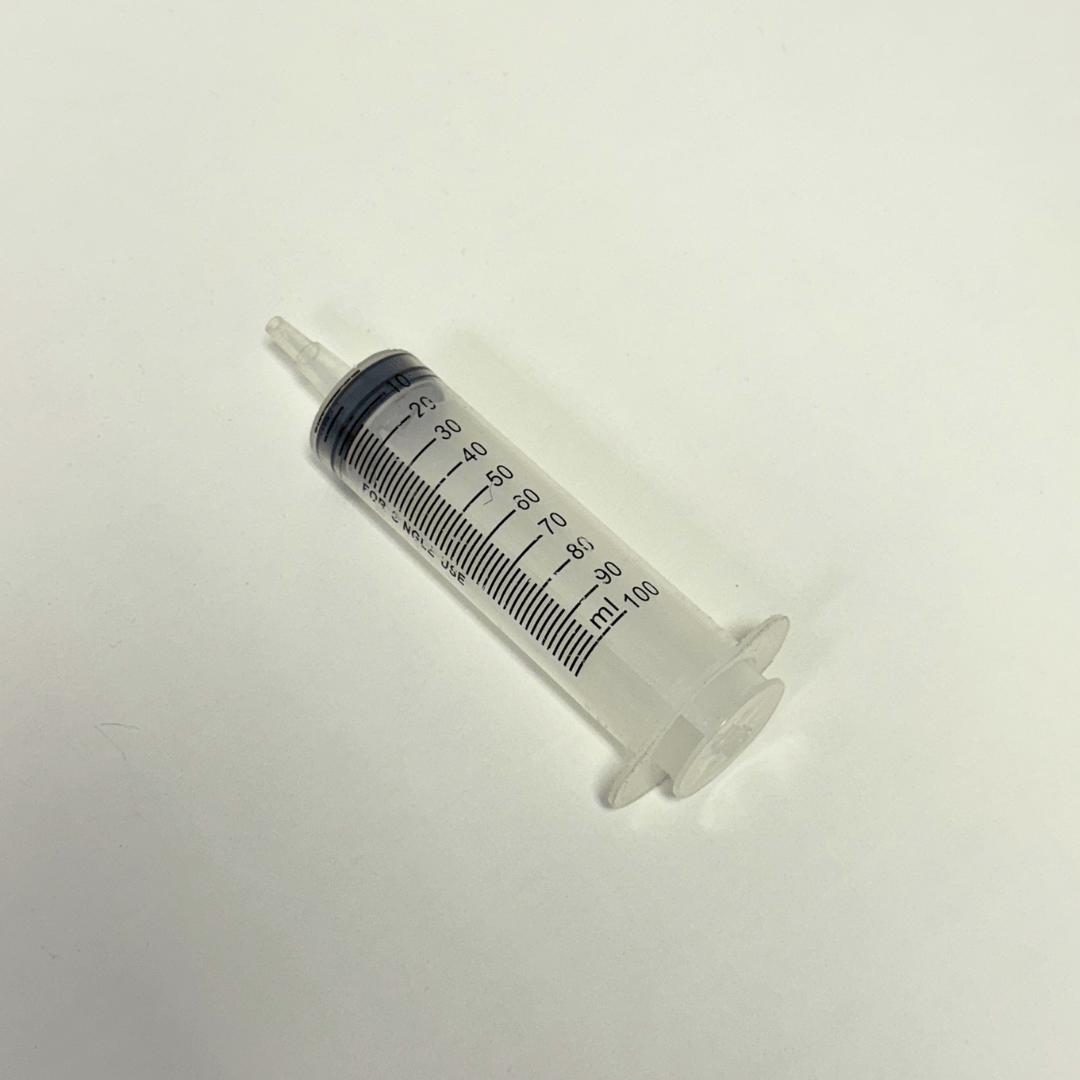 Seringa de 100 ml para uso em bioimpressoras, indicada para aplicações alimentícias e laboratoriais.